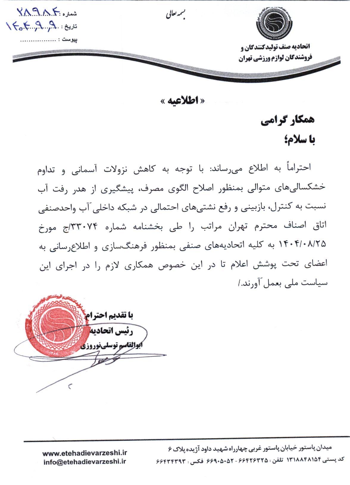 بهينه سازي مصرف آب بمنظور اصلاح الگوي مصرف و پيشگيري از هدر رفت آب نسبت به كنترل و بازبيني و رفع نشتي هاي احتمالي در شبكه داخلي آب واحد صنفي